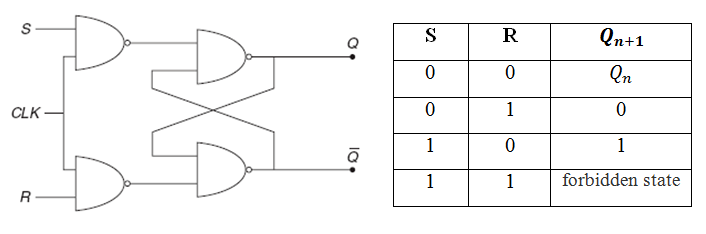 S-R फ्लिप फ्लॉप एक फोर्बिडन स्टेट है। फ्लिप फ्लॉप से इस स्थिति को हटाने के लिए, S-R फ्लिप फ्लॉप के इनपुट टर्मिनल को एक इन्वर्टर या नॉट गेट के माध्यम से एक-दूसरे इनपुट से कनेक्ट करते हैं ।