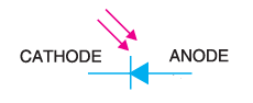 फोटो डायोड में दो टर्मिनल होते हैं जैसा कि नीचे चित्र में दिखाया गया है। छोटा टर्मिनल कैथोड के रूप में कार्य करता है और लंबा टर्मिनल एनोड के रूप में कार्य करता है।
