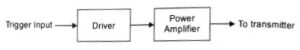 चालक वांछित पल्स तरंग आकार उत्पन्न करता है। पावर एम्पलीफायर का उपयोग ड्राइवर द्वारा उत्पन्न तरंग को उस स्तर तक बढ़ाने के लिए किया जा रहा है, जिसमें ट्रांसमीटर को स्पंदित करने की आवश्यकता होती है। कई संख्या में पल्स-फॉर्मिंग सर्किट हैं, जो ड्राइवर के लिए हो सकते हैं। उच्च शक्ति ट्यूबों का उपयोग करने वाले वीडियो एम्पलीफायरों का उपयोग पावर एम्पलीफायरों के रूप में किया जा रहा है। ब्लॉकिंग ऑसिलेटर के रूप में काम करने वाली एक सिंगल हाई-पावर ट्यूब को पल्स मॉड्यूलेटर के रूप में इस्तेमाल किया जा सकता है।